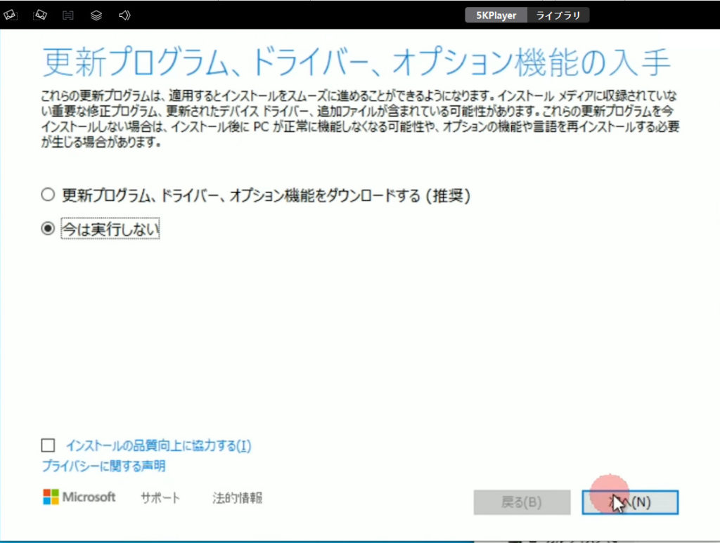 ・インストール時に「更新プログラムのダウンロード方法の変更」で「今は実行しない」を選択してインストール(データやソフトはそのまま!) - マイクロソフト公式のOSアップグレードファイルをダウンロード